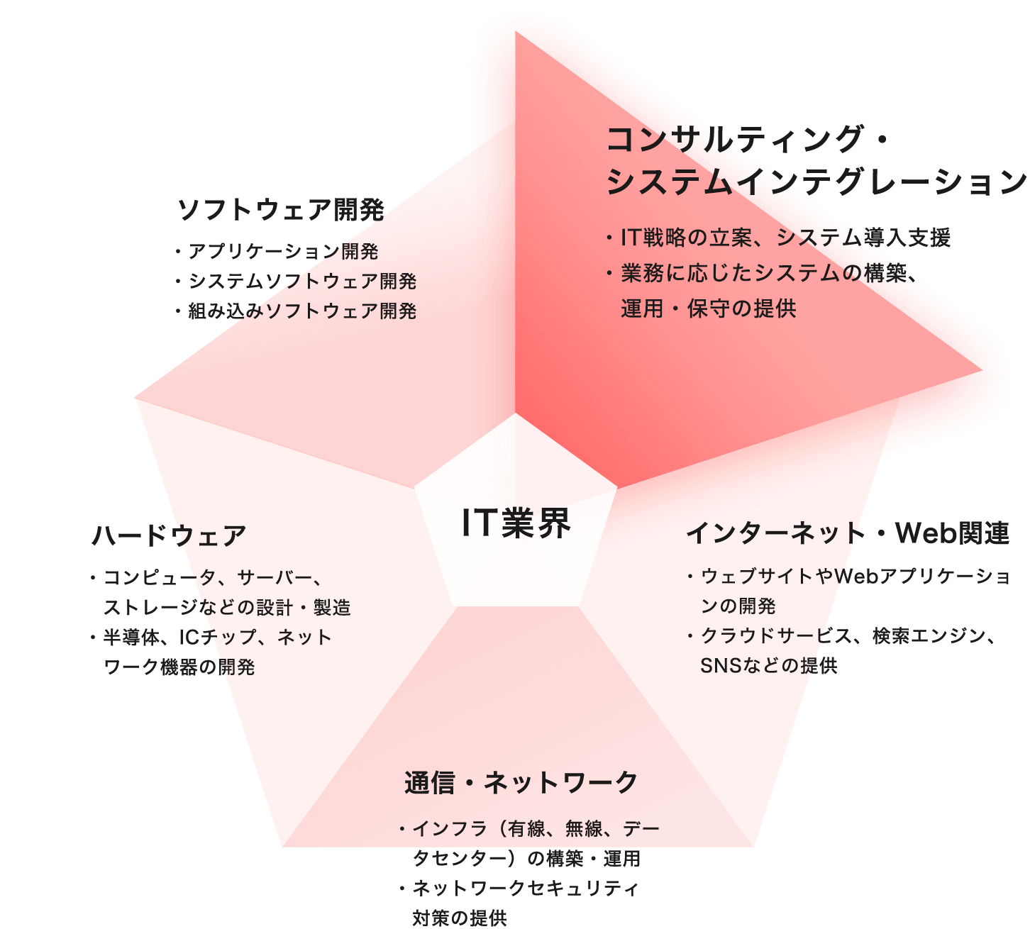 ハードウェアやソフトウェア、インフラ、サービスなど多岐にわたり、技術の進歩とともに新しい領域も次々と生まれています。